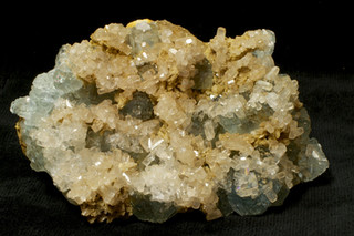 From Yaogangxien, Hunan, China, clear calcite cubes sitting on a bed of green fluorite. Under shortwave, the calcite shows small phantoms in some of the cubes. Interestingly, they're not there in midwave. Not incredibly bright under long wave, displaying a faint purple hue, which may be a combination of calcite and reflection. Under shortwave, there's a bit of bright blue on the bottom. No idea what it could be. Piece is about 6 inches by 4 inches and weighs just under two pounds. Images are shortwave, midwave, long wave and natural.