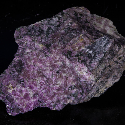This is one of the brightest varieties of sodalite from the Ilimaussaq Complex in Greenland. It is colored pea-green in white light and fluoresces a very bright yellow/orange under both longwave and shortwave. These pieces are not normally tenebrescent, but this piece is - resulting in a slightly darker, rusty orange color under SW (once the tenebrescence sets in). The animation shows this color change after exposure to SW. The green fluorescence is uranyl activated.