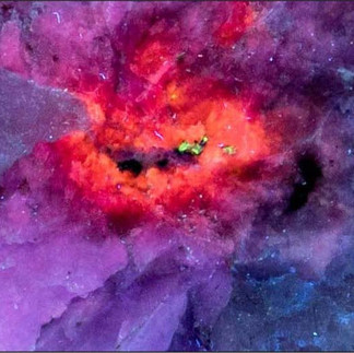 Picture 8 – Closeup image of longwave UV fluorescence of radiation altered sodalite
